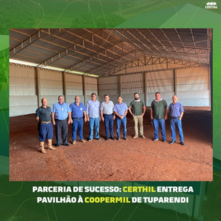 Nesta sexta-feira, 2, a Certhil reforçou seu compromisso com a excelência ao entregar um pavilhão pré-moldado para a Coopermil de Tuparendi. A formalidade de entrega contou com a presença do presidente da Certhil, Celso Benedetti, e do presidente da Coopermil, Ernani Thober. Recepcionaram a Certhil, o Supervisor de Infraestrutura, Irio Antônio Brun; o Gerente da Unidade de Tuparendi, Elton Binn; e o Ouvidor Arno Mayer, o Conselheiro Nolir Loureiro; a representante do Setor de Marketing Andressa Streicher da Coopermil.